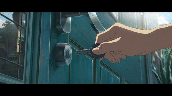 무언가에 이끌리듯이 스즈메는 문에 손을 뻗지만...